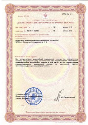 Сертификаты на медицинскую деятельность
